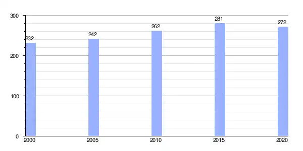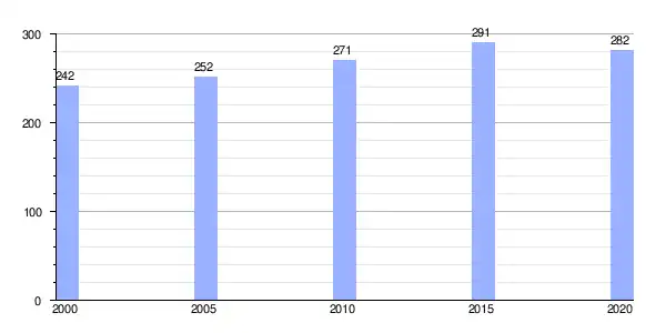 | Gráfica de evolución demográfica de Guntín (parroquia) entre 2000 y 2020 |