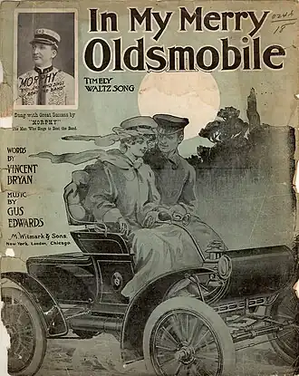 ![]() Cartel de la canción In My Merry Oldsmobile, con un automóvil Oldsmobile Curved Dash | ||