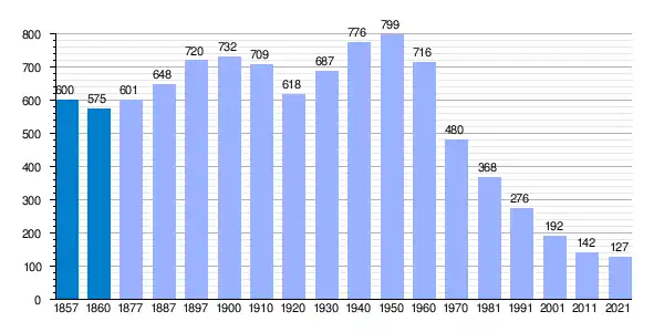 | Gráfica de evolución demográfica de Gusendos de los Oteros[5] entre 1857 y 2021 |