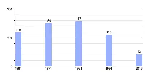 | Gráfica de evolución demográfica de Guskovići entre 1961 y 2013 |