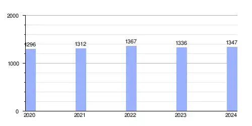 Hasta 2024 la población era de 1347 habitantes,[2] con una densidad de población de 55,22 hab/km².[2]