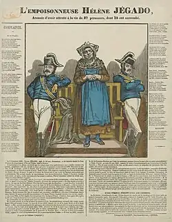 Hélène Jégado (Plouhinec, Francia; 17 de junio de 1803 - Rennes, Francia; 26 de febrero de 1852) fue una sirvienta y asesina en serie francesa. Se cree que asesinó a 36 personas con arsénico durante un período de 18 años. Después de un período inicial de actividad, entre 1833 y 1841, parece que se detuvo durante casi diez años antes de una serie final de asesinatos en 1851.