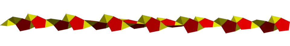 Y las pirámides pentagonales equiláteras se pueden encadenar con 3 configuraciones de vértices, 3.3.5, 3.5.3.5 y 3.3.3.5.3.3.5: