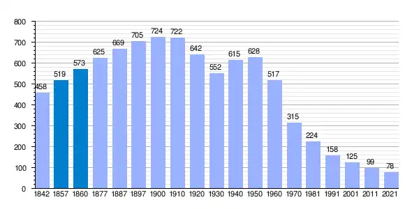 | Habitantes | 724 | 722 | 642 | 552 | 615 | 628 | 517 | 315 | 224 | 158 | 133 | 130 | 129 | 120 | 122 | 121 |