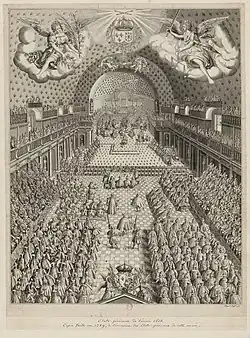Esta gran sala, la más grande de París, era lo suficientemente grande para contener la multitud de cortesanos en los grandes eventos, fiestas reales, ballets de la corte y otras festividades: las fiestas nupciales de Marguerite de Valois y de Henri de Navarre (1572), el ballet cómico de la reina (1581), la reunión de los Estados Generales (27 octobre 161427 de octubre de 1614 a23 février 161523 de febrero de 1615 ), últimos anteriores a los de 1789.[2] Los príncipes y Luis XIV bailaron públicamente allí[2]