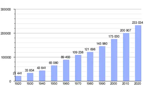 Gráfica de evolución de Región de Höfuðborgarsvæðið entre 1920 y 2020