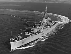 Construida por Yarrow & Co. Ltd. en Scotstoun, Escocia; fue puesta en gradas el 23 de julio de 1957, botada el 30 de octubre de 1959 y asignada el 28 de junio de 1961.[1]