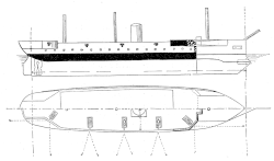 • Velas • Máquina de vapor horizontal a carbón • 8 calderas cilíndricas • 1 hélice | |