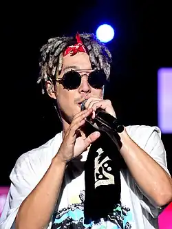 ![]() Ha-ha durante el "23rd Busan Sea Festival" en Haeundae en agosto del 2018. | ||