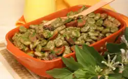En Cerdeña, las habas se cocinan tradicionalmente con manteca de cerdo, a menudo sustituida o acompañada de tocino o carne picada de cerdo.
