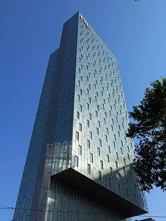 Se trata de un edificio de 120 metros de altura, que está ocupado por dos hoteles de 4 estrellas y 5 estrellas de la cadena Meliá Hotels International. El edificio va acompañado de otros de menor altura destinados a viviendas y oficinas.