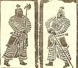 - ↑ 郑, 轶伟 (2007). 中国古代冷兵器. 上海: 上海文化出版社. p. 29. ISBN 978-7-80740-220-6.
