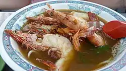 Los fideos de huevo se sirven sobre un recipiente con un caldo de carne muy concentrado al que se le añade gambas, rodajas de cerdo, unas rodajas de pastel de pescado y algunos brotes de soja cubierto con unas chalotas fritas y cebollas de primavera. El caldo está elaborado con pasta de gambas, diversas cabezas de langostinos y mariscos diversos, pimienta blanca, ajo y otra especies según gusto del cocinero. Tradicionalmente se añade algo de manteca a la sopa pero hoy en día es menos común debido a las preocupaciones por la salud.