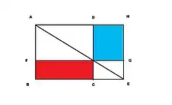 Utilizando su principio de inscribir un rectángulo en un triángulo de ángulo recto para y , él obtuvo: