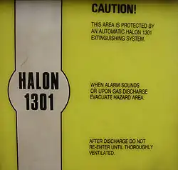 El halón es un gas extintor de incendios usado antes de ser sustituido por el que se usa actualmente que es el gas inergén[1]
