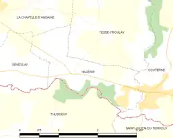 Haleine era una comuna francesa situada en el departamento de Orne, de la región de Normandía, que el 1 de enero de 2016 pasó a ser una comuna delegada de la comuna nueva de Rives-d'Andaine[3] al fusionarse con las comunas de Couterne, Geneslay y La Chapelle-d'Andaine.