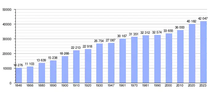 Todos los datos históricos relativos al actual municipio, el siguiente gráfico refleja su evolución demográfica, incluyendo municipios después de efectuada la fusión el 1 de enero de 1977.
