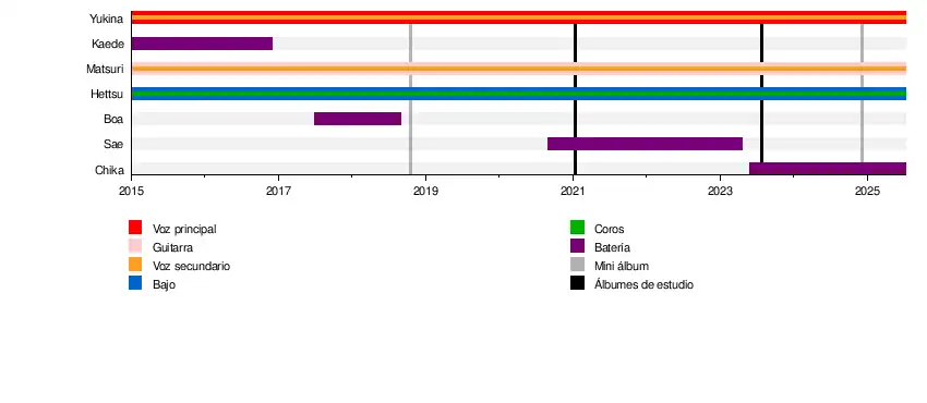 - ↑ Ato, Daishi (26 de octubre de 2023). «Hanabie.». Headbang Magazine 40: 78. ISBN 978-4401653966.