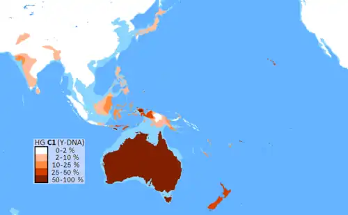 - C1b2a1 (M208) en Indonesia, Nueva Guinea[11] y demás islas del Pacífico, especialmente en Polinesia.