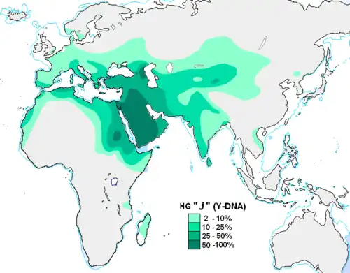 - ↑ a b c d Y-DNA Haplogroup J Archivado el 1 de septiembre de 2011 en Wayback Machine. DNA Ancestry