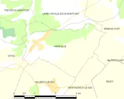 - ↑ INSEE, Datos de población para el año 2012 de Haréville (en francés).