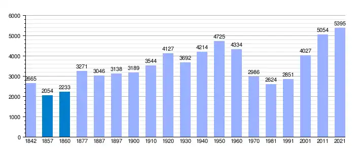 | Gráfica de evolución demográfica de Haría[4] entre 1842 y 2021 |