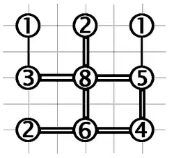 - Ningún puente puede cruzarse con otro puente o con otra isla distinta de las que une.