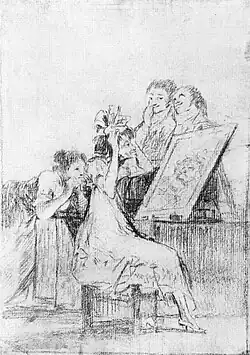 - Explicación de esta estampa del manuscrito del Museo del Prado: Hace muy bien en ponerse guapa: son sus días; cumple 75 años y vendrán las amigas a verla.[2]