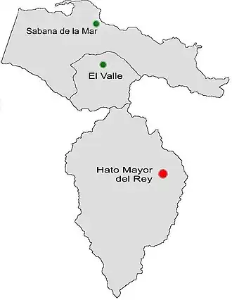 | Hato Mayor del Rey | Guayabo Dulce - Mata Palacio - Yerba Buena | 653.8 km² |