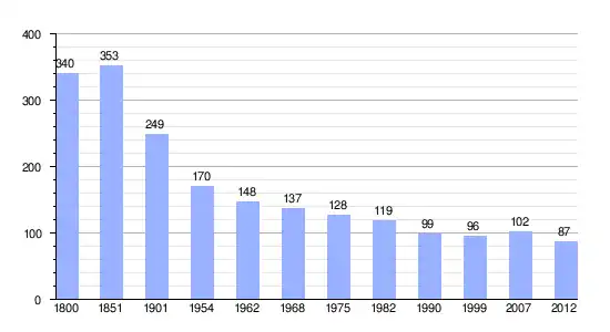 | Gráfica de evolución demográfica de Haux entre 1800 y 2012 |
