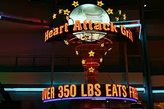 El Heart Attack Grill es un restaurante de hamburguesas situado en el downtown de Las Vegas, Nevada (anteriormente localizado en Chandler, Arizona), Estados Unidos.[1][2] El restaurante está ubicado en 450 de Fremont Street en la entrada principal de Fremont Street Experience en el downtown de Las Vegas. Su hamburguesa «Quadruple Bypass» recibió una entrada en el Libro Guinness de los Récords en 2013 como la hamburguesa con más calorías del mundo. Ha causado controversia al servir alimentos con una alta cantidad de calorías con nombres provocativos.