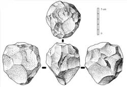 - ↑ Inizan, Marie-Louise; Reduron, Michel; Roche, Hélène y Tixier, Jacques (1995). «Le façonnage». Technologie de la pierre taillée (Préhistoire de la pierre taillée, nº 4). CNRS-CREP, Meudon. ISBN 2-903516-04-9. Páginas 43-57.