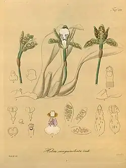 Helcia sanguinolenta Lindl. 1845, es una especie de orquídea epifita perteneciente a la subfamilia Epidendroideae dentro de la familia de las orquidáceas.