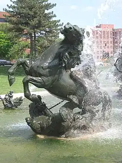 - la fuente constituida por cuatro esculturas ecuestres, fue concebida para la mansión de Harbor Hill en Long Island[nota 5] .