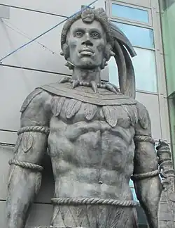 Estatua de Shaka en Camden Market (Londres), cuyo aspecto físico, especialmente sus facciones, son muy similares a las de Cele | ||
