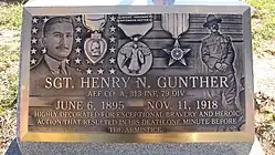El general John J. Pershing mencionó al día siguiente que Gunther fue el último estadounidense muerto en la guerra. El ejército, de manera póstuma, le restauró el grado de sargento y lo premió con una citación divisional por gallardía en acción y con la Cruz por Servicio Distinguido (Estados Unidos).