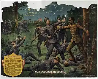 Una litografía de 1918 que dramatiza las acciones de Johnson en la guerra.