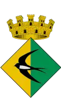 «Partido: primero de oro; segundo de sinople; resaltando sobre la partición una golondrina de sable volando. Por timbre una corona mural de villa.» Fue aprobado el 12 de enero de 1996 y publicado en el DOGC el 31 del mismo mes con número 2162.[22] Badia del Vallès es un Ayuntamiento de poca edad (constituido en 1994 con terrenos segregados de Barberá del Vallés y Sardañola del Vallés), formado hacia los años 60 mayoritariamente con gente emigrada del sur peninsular. Así, la golondrina fue escogida como símbolo de la emigración, mientras que los colores de cada partición representan los dos municipios originarios (oro por Barberá del Vallés y sinople por Sardañola del Vallés).[18] |