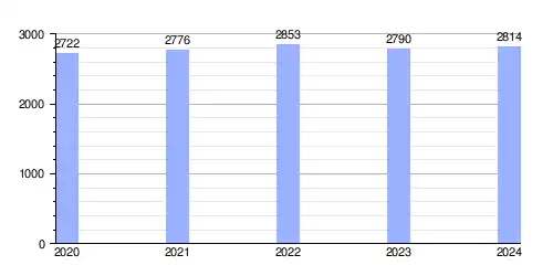 Hasta 2024 la población era de 2814 habitantes,[2] con una densidad de población de 383,37 hab/km².[2]