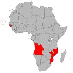 El portugués en África es la lengua oficial de Angola,[5] Santo Tomé y Príncipe,[6] Mozambique[7] Cabo Verde,[8] y Guinea-Bisáu,[9] Es, asimismo, una de las lenguas oficiales de Guinea Ecuatorial (junto al español y al francés).[10] También se habla en la Región autónoma de Madeira, isla perteneciente a Portugal.