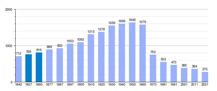 | Gráfica de evolución demográfica de Herguijuela[9] entre 1842 y 2021 |