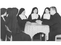 ![]() Foto antigua de algunas hermanas de la caridad con el fundador | ||