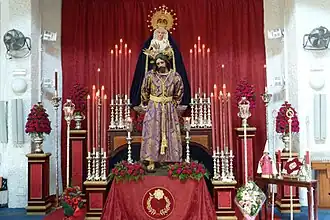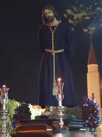 - Sayón Imagen realizada por D. Rafael Ahumada Zuaza en 1983 y restaurado en el año 2017 por D. Joaquín Domínguez Vidal. El sayón aparece en la parte delantera del Misterio a la izquierda de Jesús, reflejado antes de golpearle. Su crueldad contrasta con la humildad de Cristo.