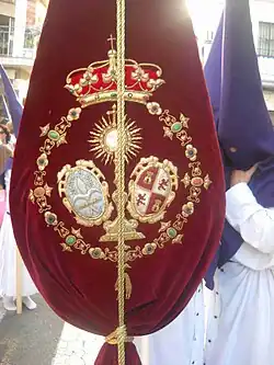 La Virgen del Dulce Nombre procesiona en un palio de terciopelo azul liso. En julio de 2020 fue presentado el proyecto del futuro palio, diseñado por Álvaro Abril Vela. Será de estilo modernista, en color ocre y bordado en plata.