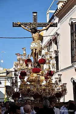 - El paso del Stmo. Cristo del Confalón es el único que continúa procesionando al tradicional estilo de ecijano, llevado a hombros por hermanos de paso.