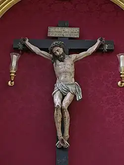 La imagen de N. P. Jesús de la Promesa es un crucificado anónimo del siglo XVII que preside la sacristía del Convento de San Esteban. Destaca su gesto de dolor con la boca desencajada y la corona de espinas tallada sobre la cabeza. La anatomía presenta un canon desproporcionado para buscar el efectismo conmovedor, con los pies cruzados sobre la cruz y el sudario retorcido sobre la cadera.[6]