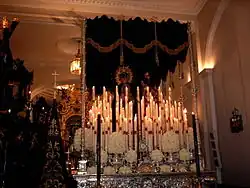La imagen de la Virgen fue realizada Manuel Gutiérrez en 1902, y fue reformada en 1965 y en 2005. Procesiona en un paso de palio acompañada por san Juan Evangelista. El san Juan fue realizado por Manuel Pineda Calderón en 1954 y fue restaurado en 1982.[1]