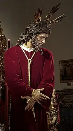 - ↑ a b Maite M. Faraldo y otros (1992). Semana Santa en Sevilla. Ayuntamiento de Sevilla, Tabacalera y Comisaría de la Ciudad de Sevilla para 1992.