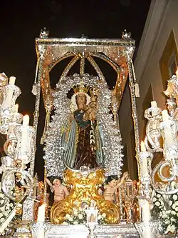 Según la leyenda el apóstol Santiago el Mayor habría llegado a España a predicar instaurando la Iglesia en Sevilla y colocando a su cargo a su discípulo Pío. Pío hizo una imagen de la Virgen que colocó en la iglesia de Santa Jerusalén, creada en el año 38.[2][3][nota 1] Esa iglesia habría estado situada cerca de la puerta de Córdoba.[3]