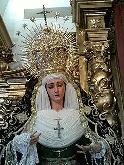La Virgen del Mayor Dolor es obra de Romero Murillo de 1944. El ángel es obra de Juan Abascal de 1962.[1]